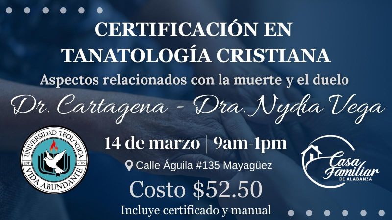 29 de Abril de 2026 - 29 de Mayo de 2026 Certificación en Tanatología Cristiana Con el Dr. Magdiel Narváez